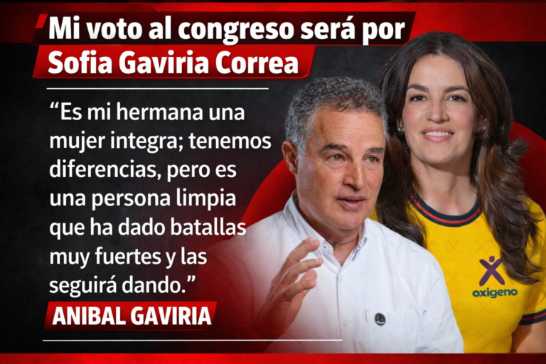 COLOMBIA En entrevista para la Revista Semana Anibal Gaviria muestra el apoyo a su hermana: 4 minutos atrás omaralbertomesalopez@gmail.com Mi voto al congreso será por Sofia Gaviria Correa . Es mi hermana una mujer integra; tenemos diferencias, pero es...