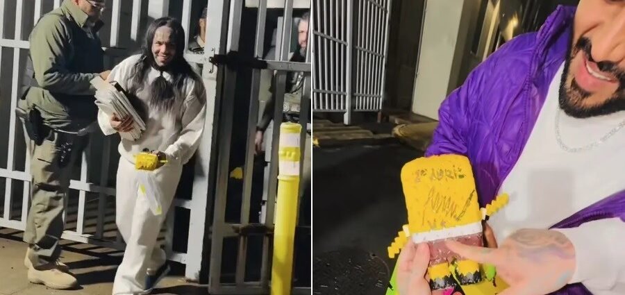 Visiblemente emocionado, Tekashi —cuyo nombre real es Daniel Hernández— apareció sonriente, vestido con una sudadera color blanco hueso, y se despidió de quienes lo observaban desde las ventanas del centro penitenciario.
